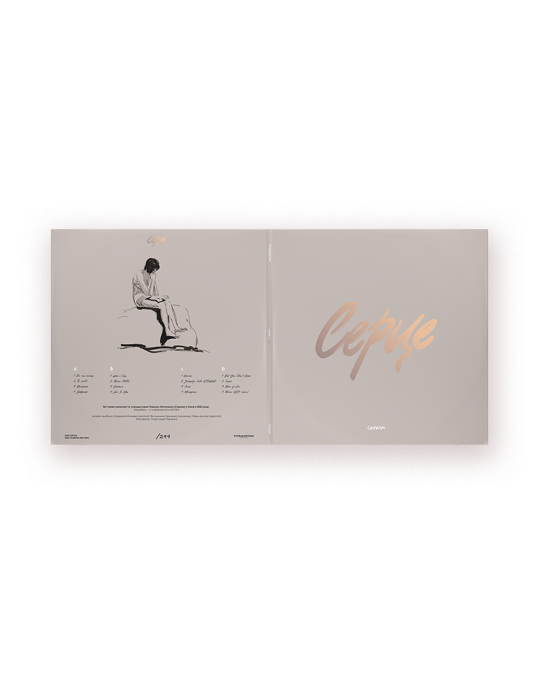 The vinyl edition of Serce is released as a standalone work with its own tracklist and internal logic. Presented as a double LP, the album features 16 tracks that do not duplicate the digital version. The release includes bonus tracks Waves (2025 version) and a remix of Waves by French duo dOP, both available exclusively on vinyl. The edition is complemented by a gatefold sleeve with illustrations by the artist’s father, an insert for autographs included in the first 99 copies, and printed inner sleeves.