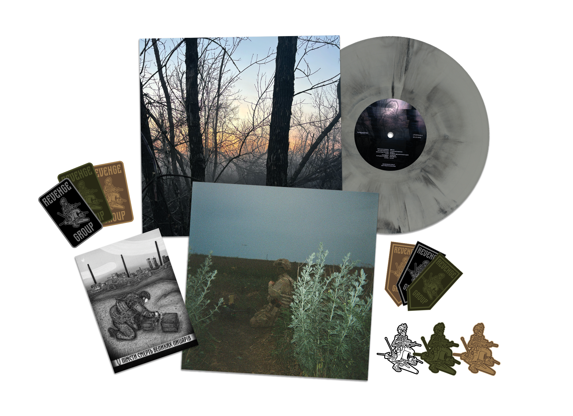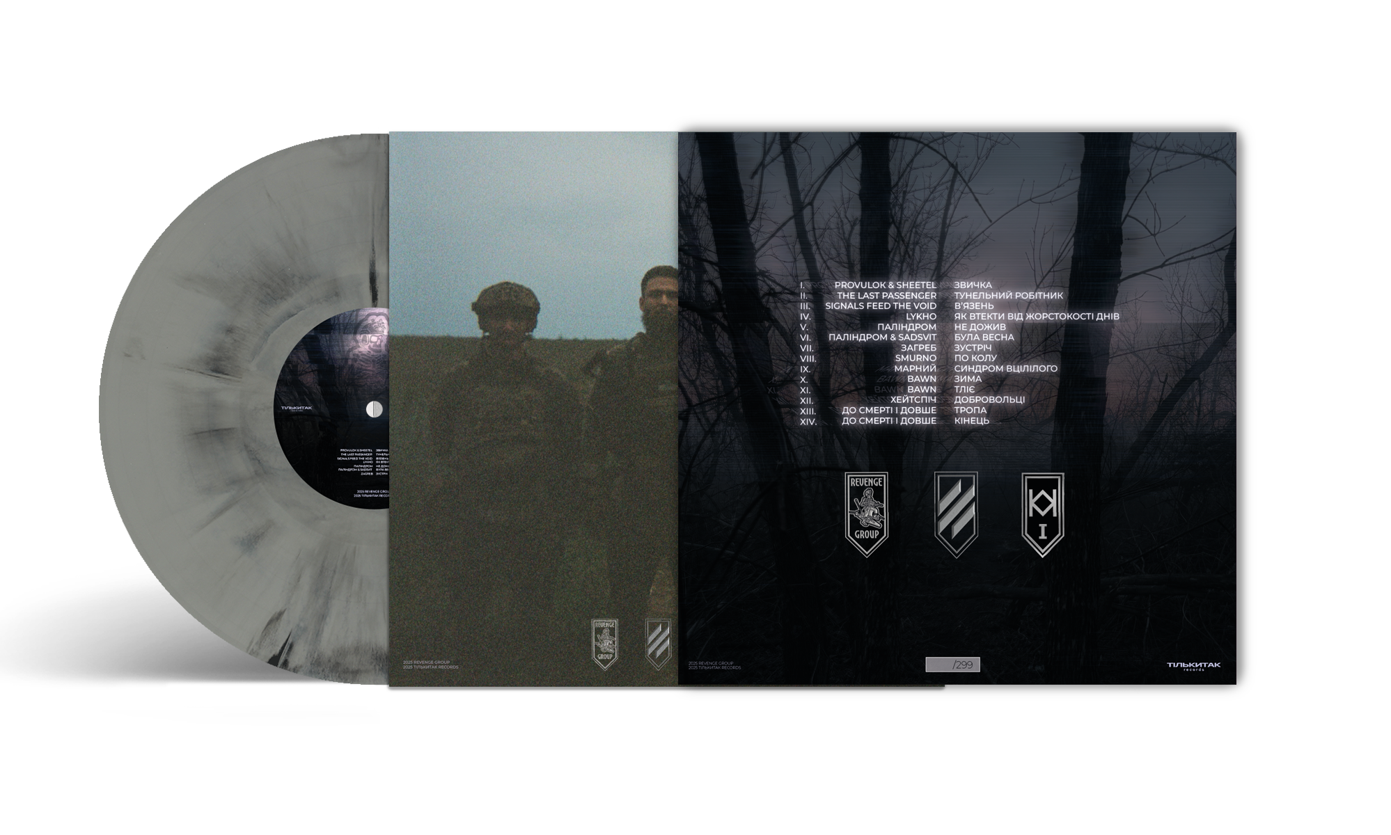 Revenge Group is a compilation of Ukrainian songs created in collaboration with the Ukrainian Armed Forces unit – Revenge Group. This release attempts to capture the experience the soldiers are living here and now. It is an audio illustration of memory, the present moment, and resilience. Most importantly, all proceeds from the sale of this vinyl will be donated to the unit and their fund “No Silence,” which aims to raise 5 million UAH. The compilation features well-known contemporary artists such as SadSvit, Palindrome, HateSpeech, Lykho, and many others.